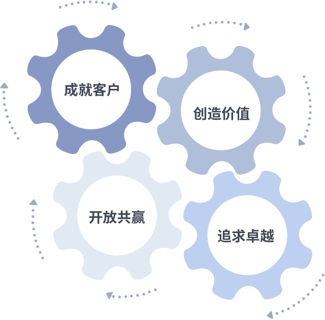 成就客户是一切决策的出发点,创造价值是衡量所有工作的标准,追求卓越是乐通lt088做事做人的态度,开放共赢是乐通lt088的格局也是最终的结果。价值观的齿轮环环相扣,推动着组织里的每个人不断向前。